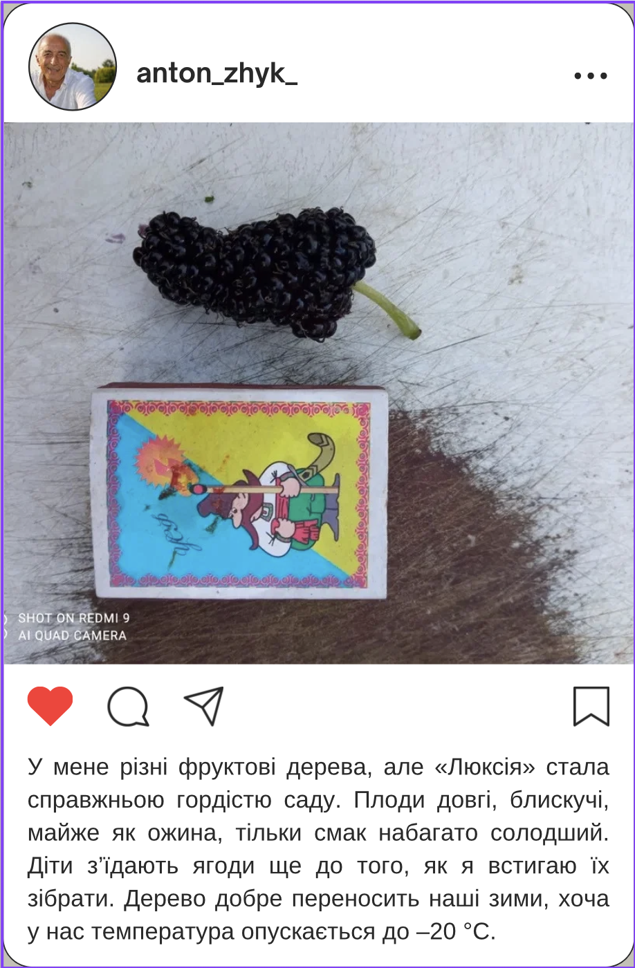 Вирощена з любов’ю шовковиця «Люксія» відзначається багатим смаком, розміром плодів та високою врожайністю й гарантовано стане джерелом літніх смаколиків